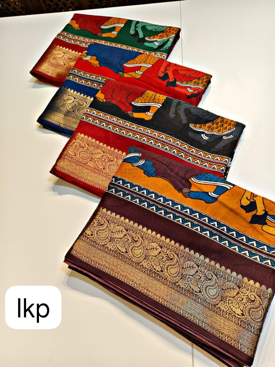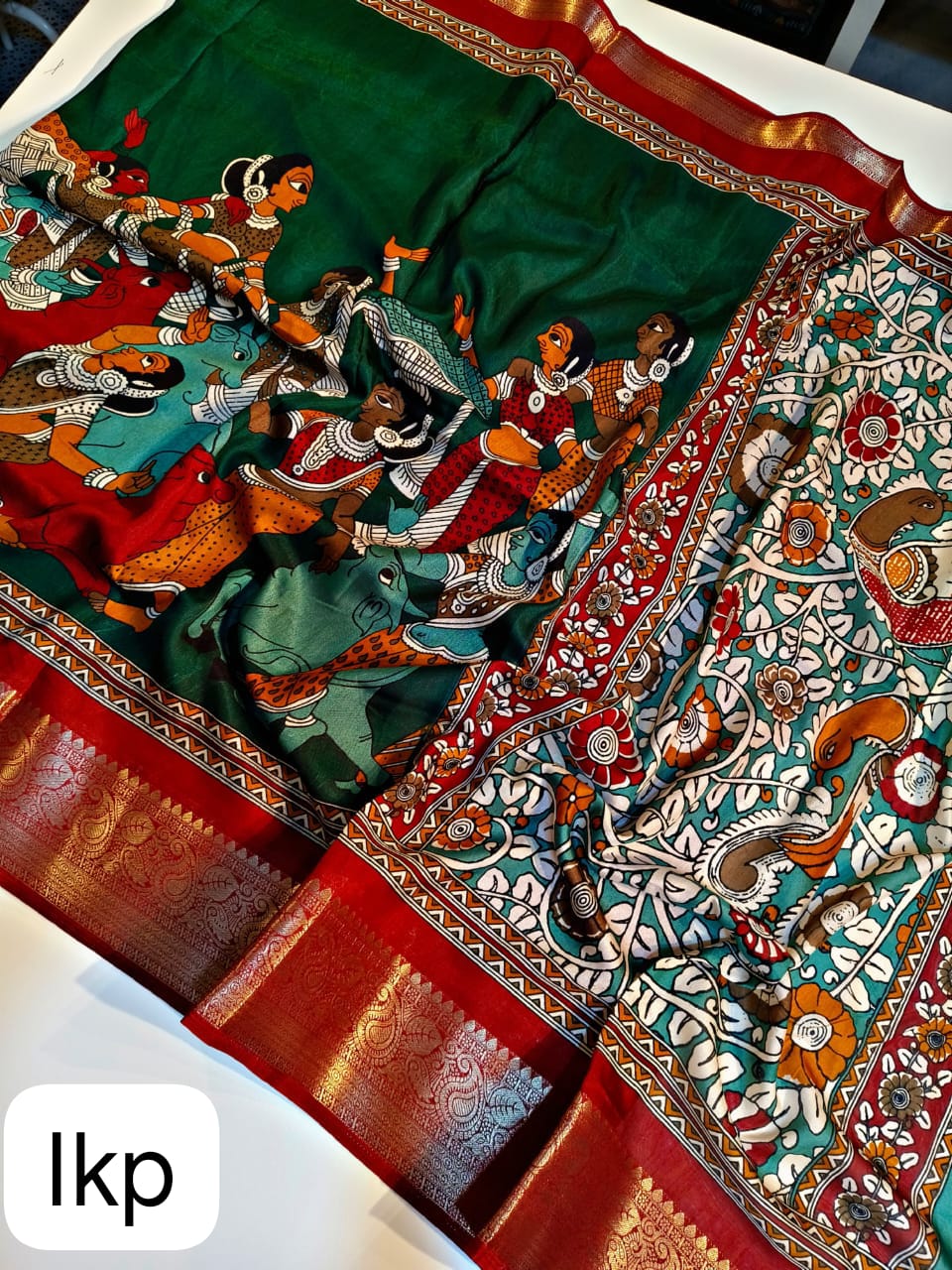 Beautiful Mangalgiri Kalamkari Saree With Blouse
