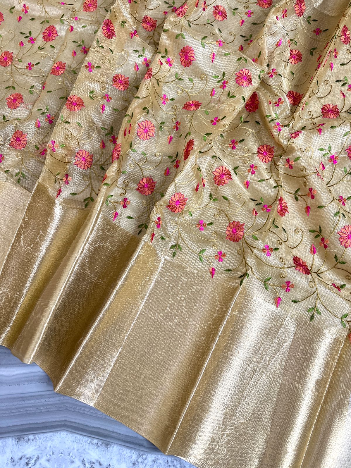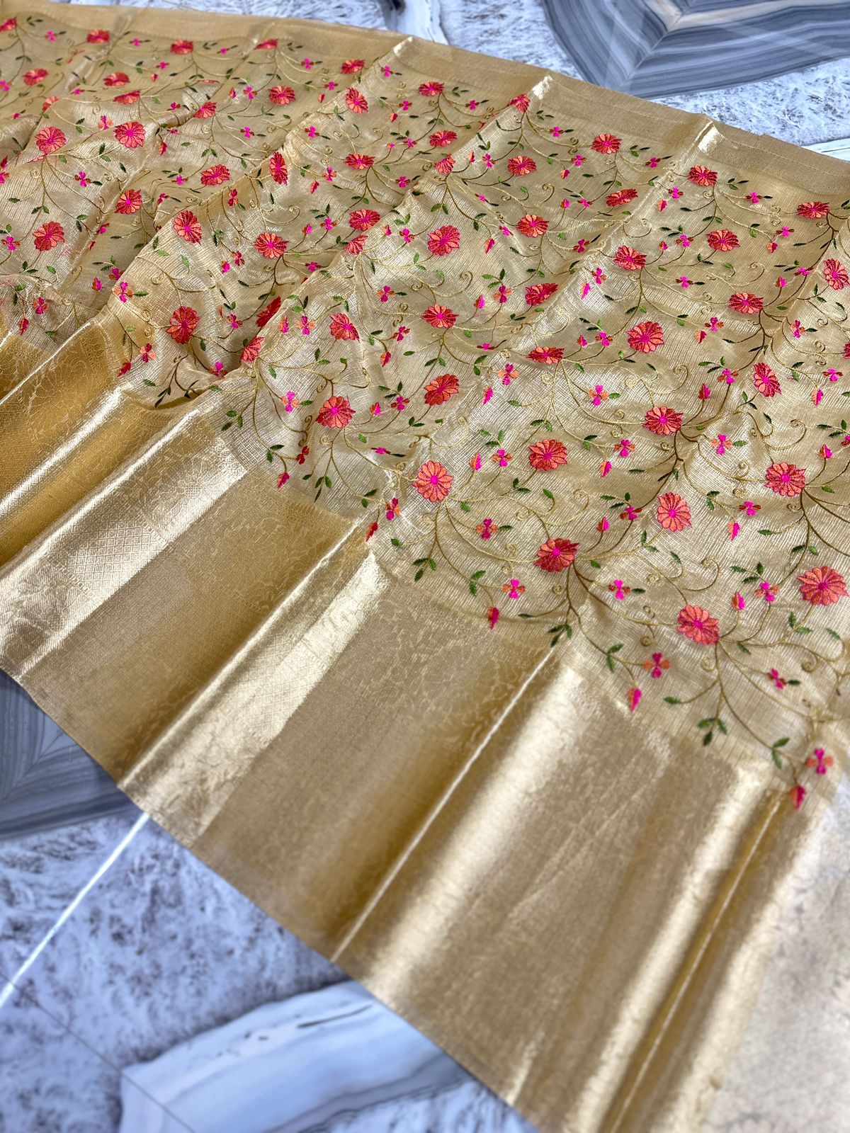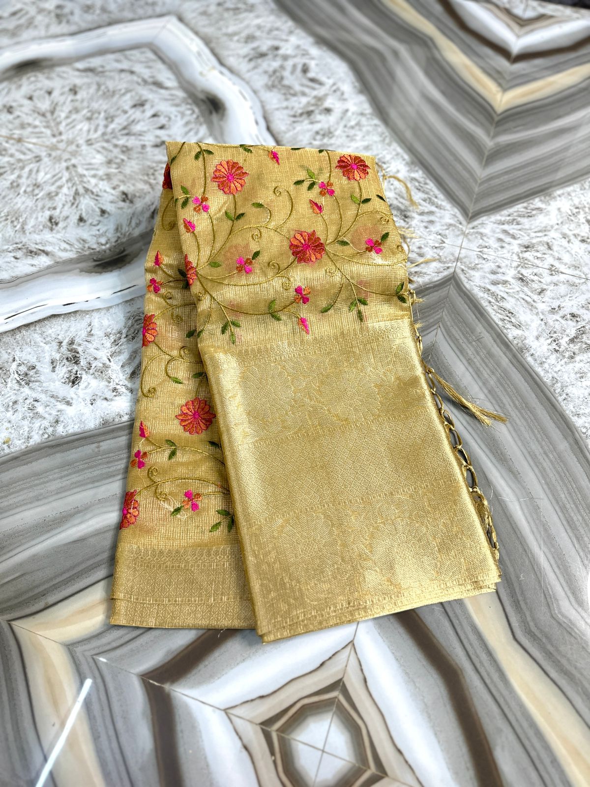 Tissue Embroidery Banarse Saree