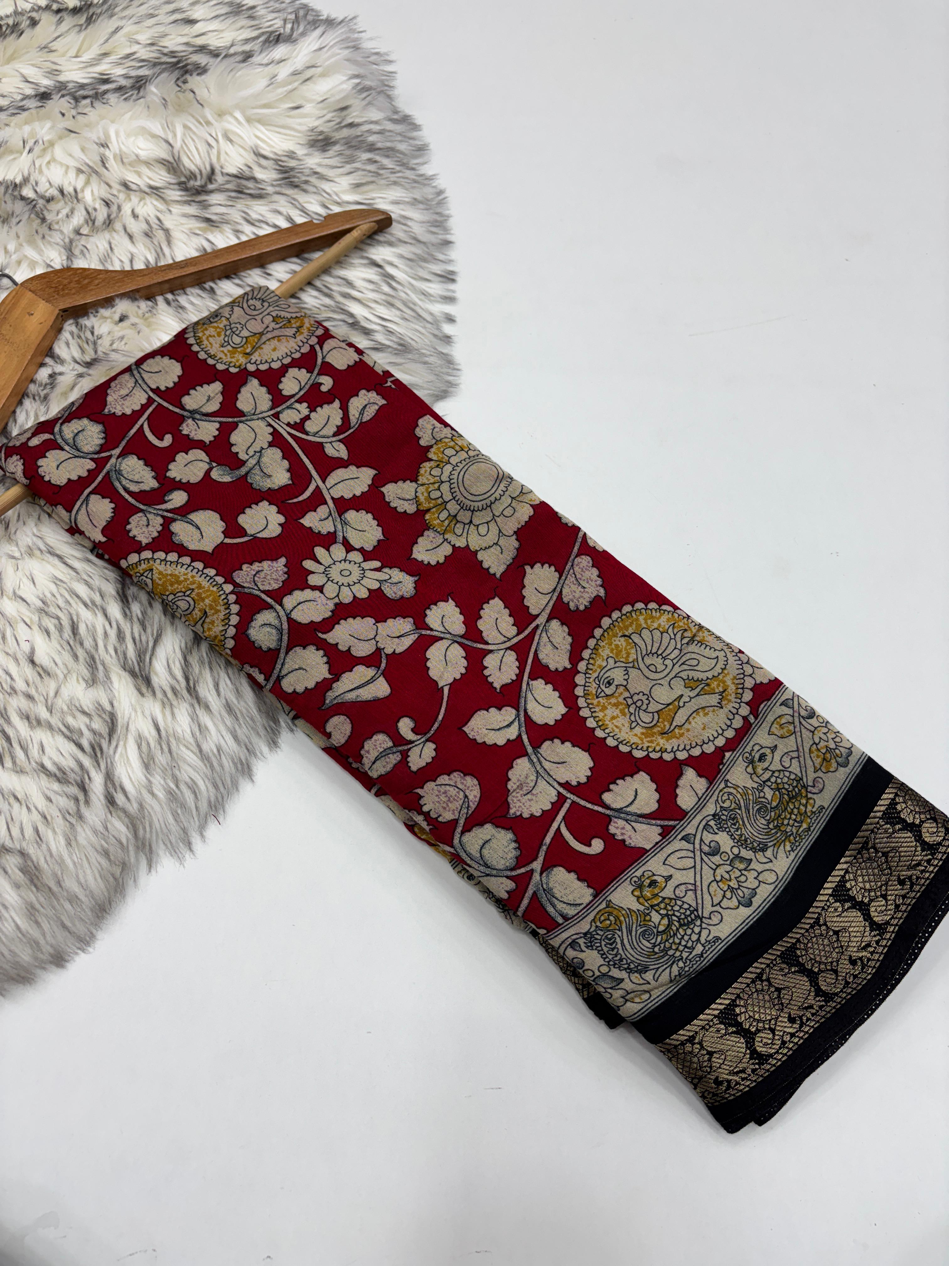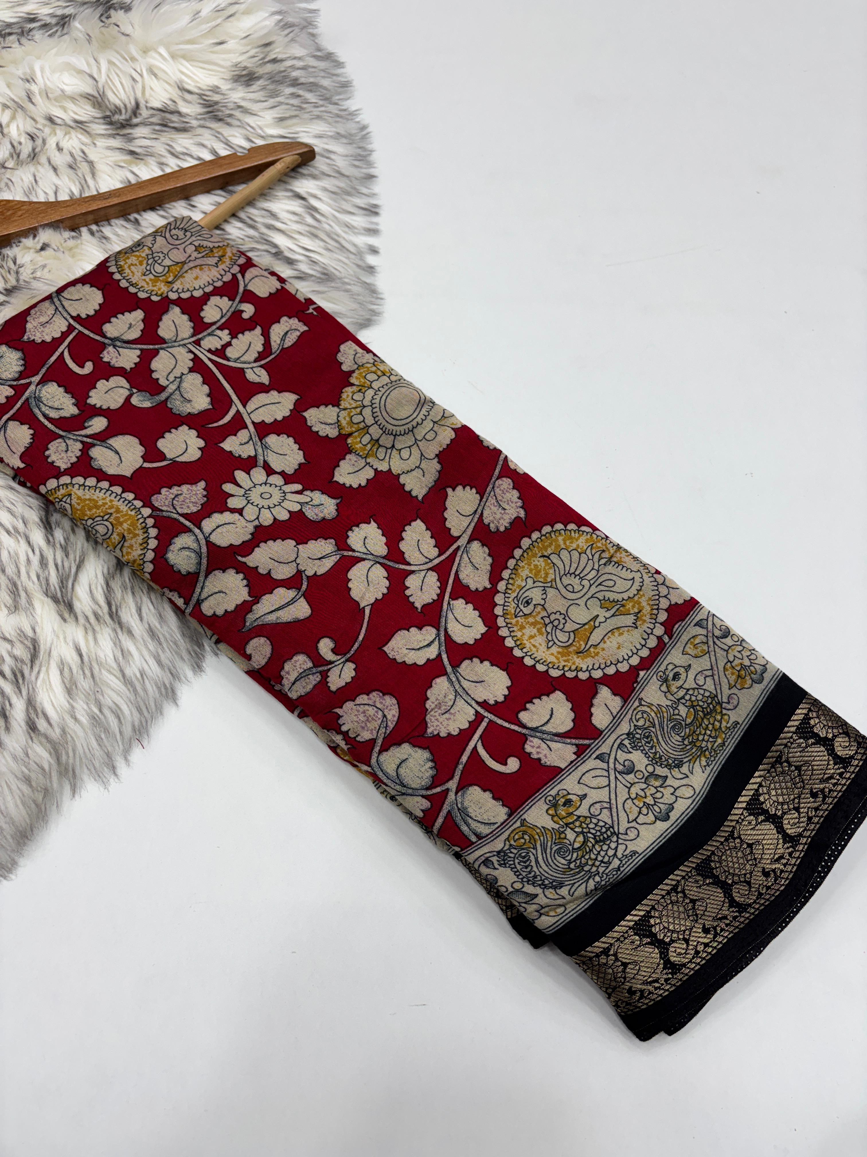Beautiful Pure Viscose Kalamkari Saree With Blouse