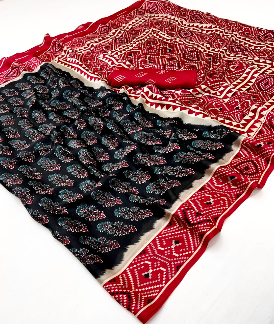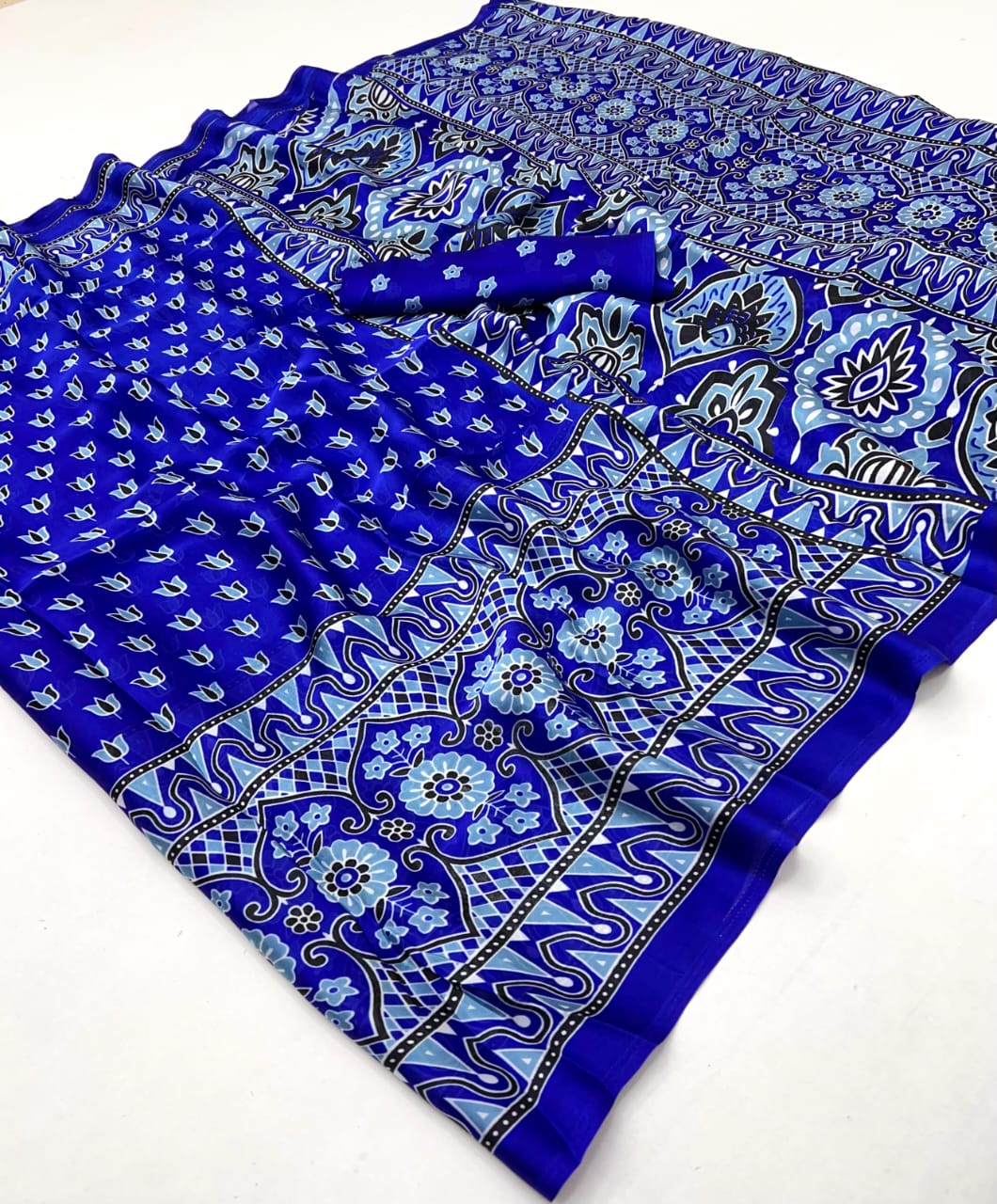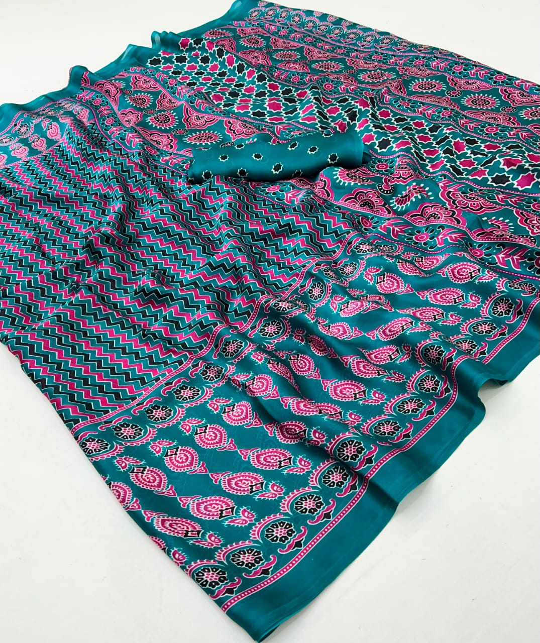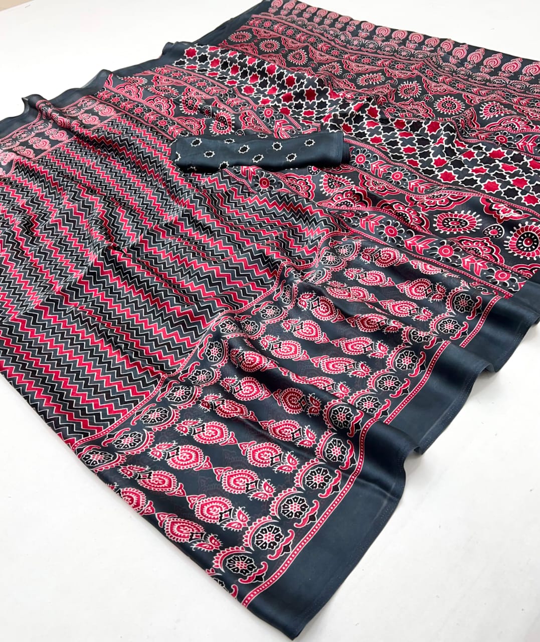 • Beautiful Ajrakh Modal Silk Saree With Blouse