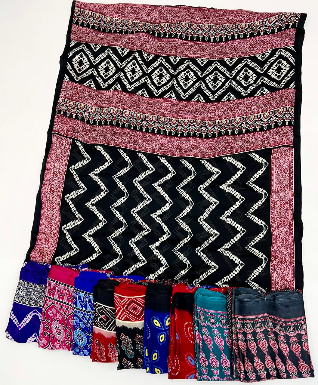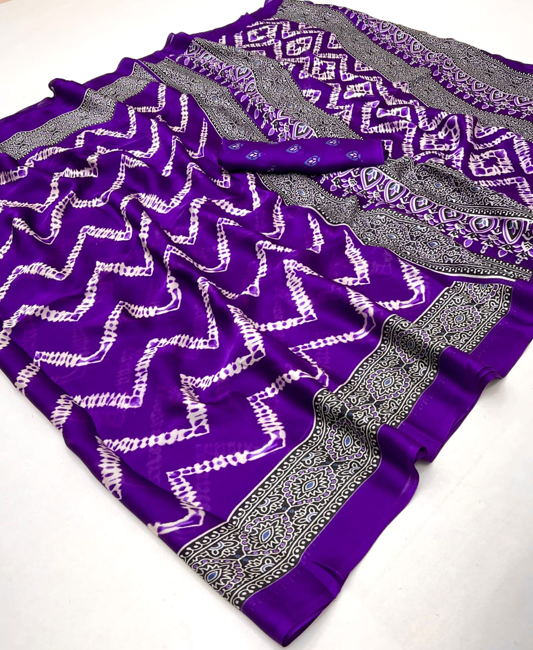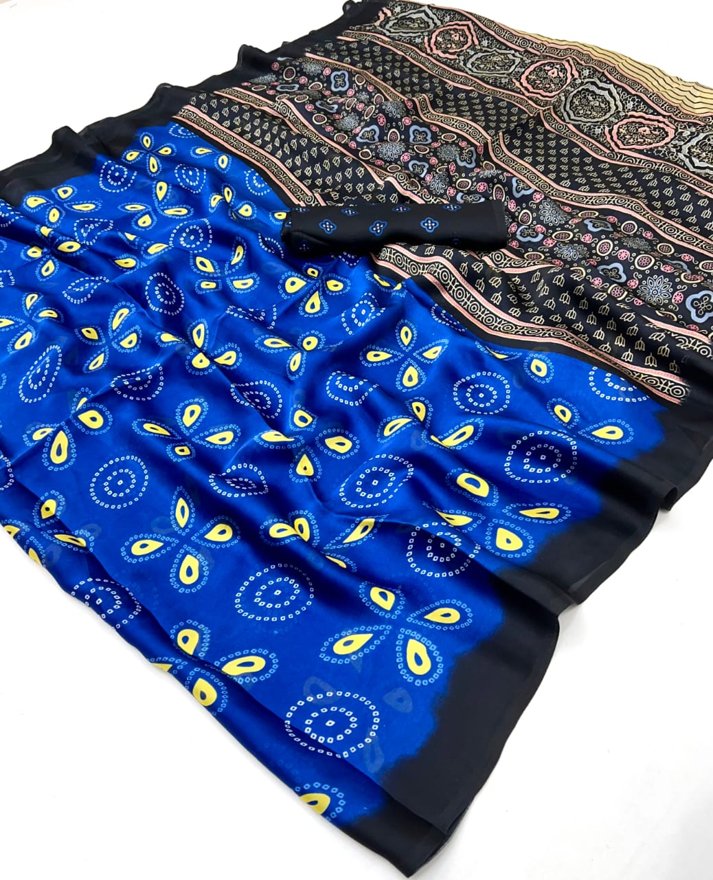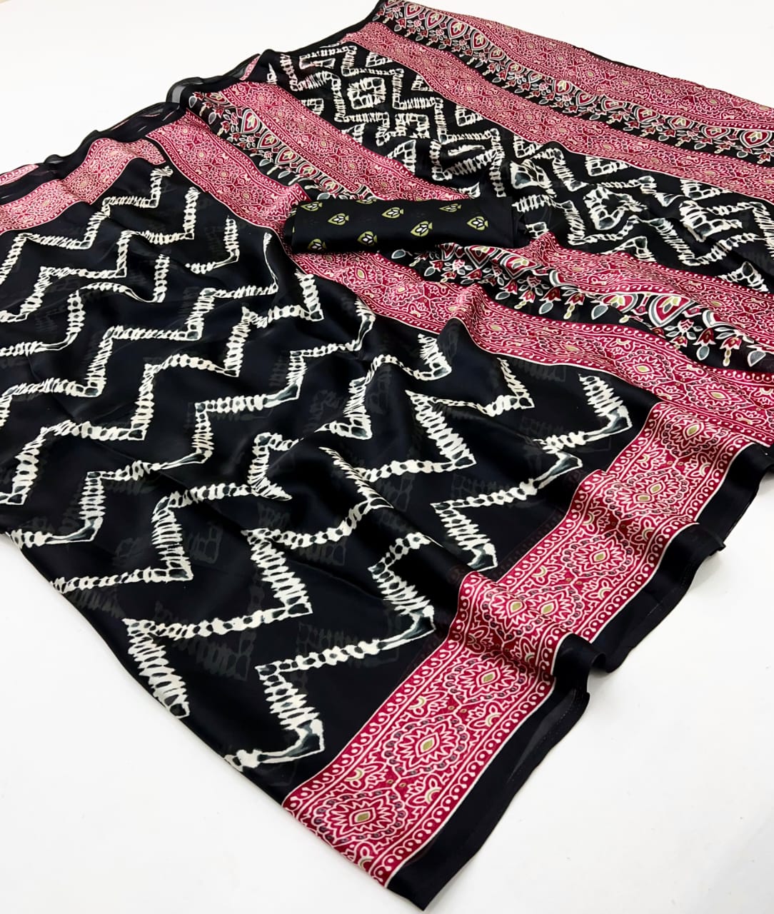• Beautiful Ajrakh Modal Silk Saree With Blouse