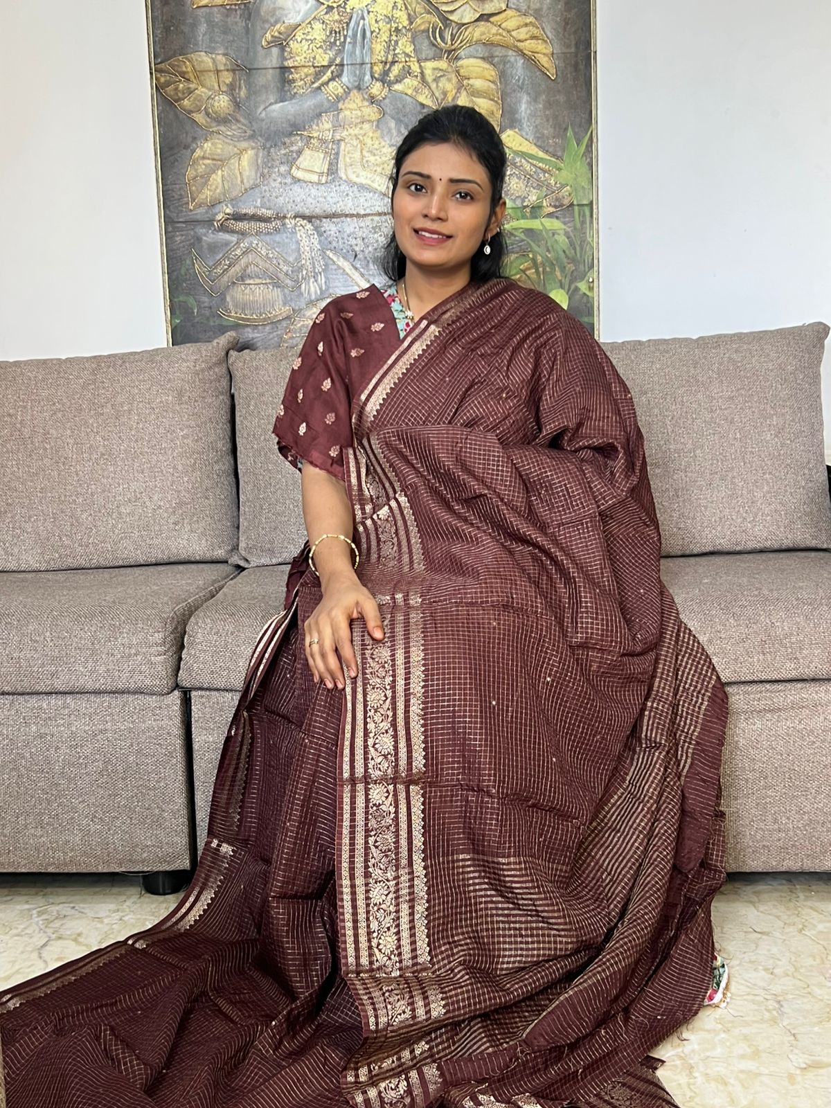 Beautiful Brown Pure Chinnon Saree With Blouse