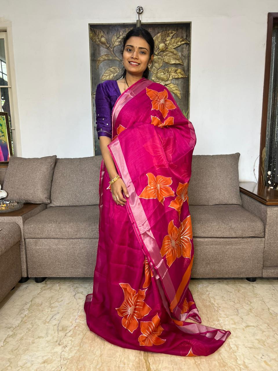 Beautiful Floral Organza Saree With Blouse