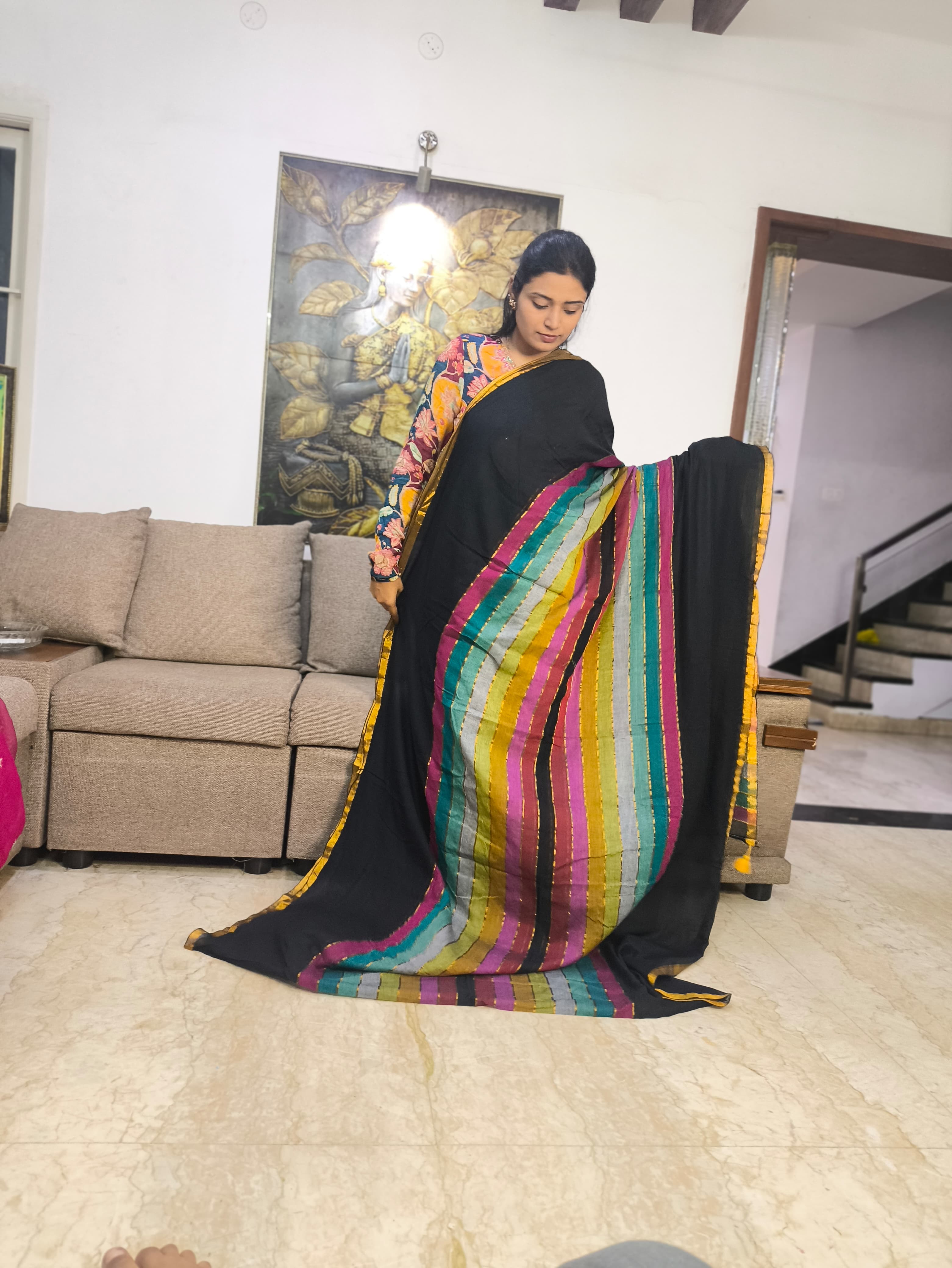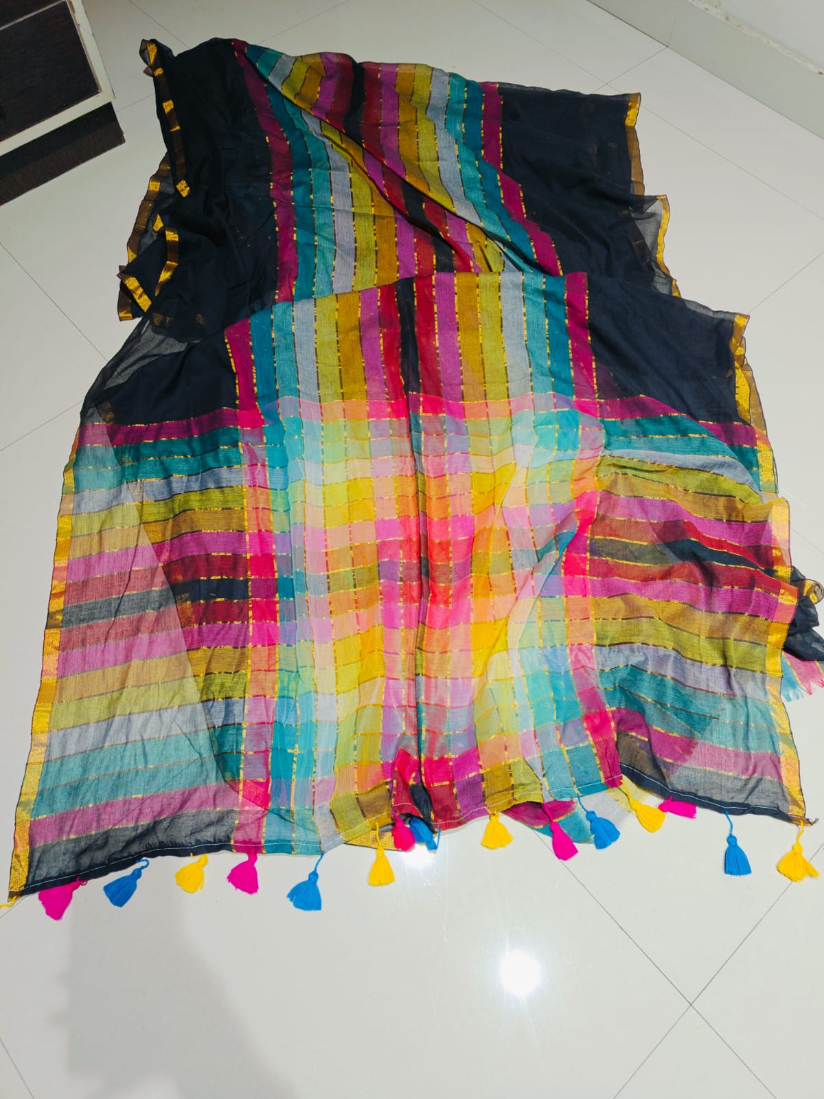 Beautiful Mul Cotton Saree With Tassels