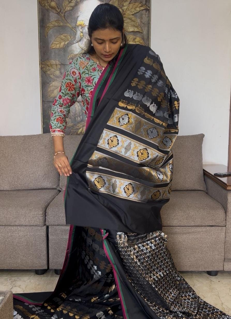 Beautiful Nita Ambani Inspired Black Banarse Silk Saree