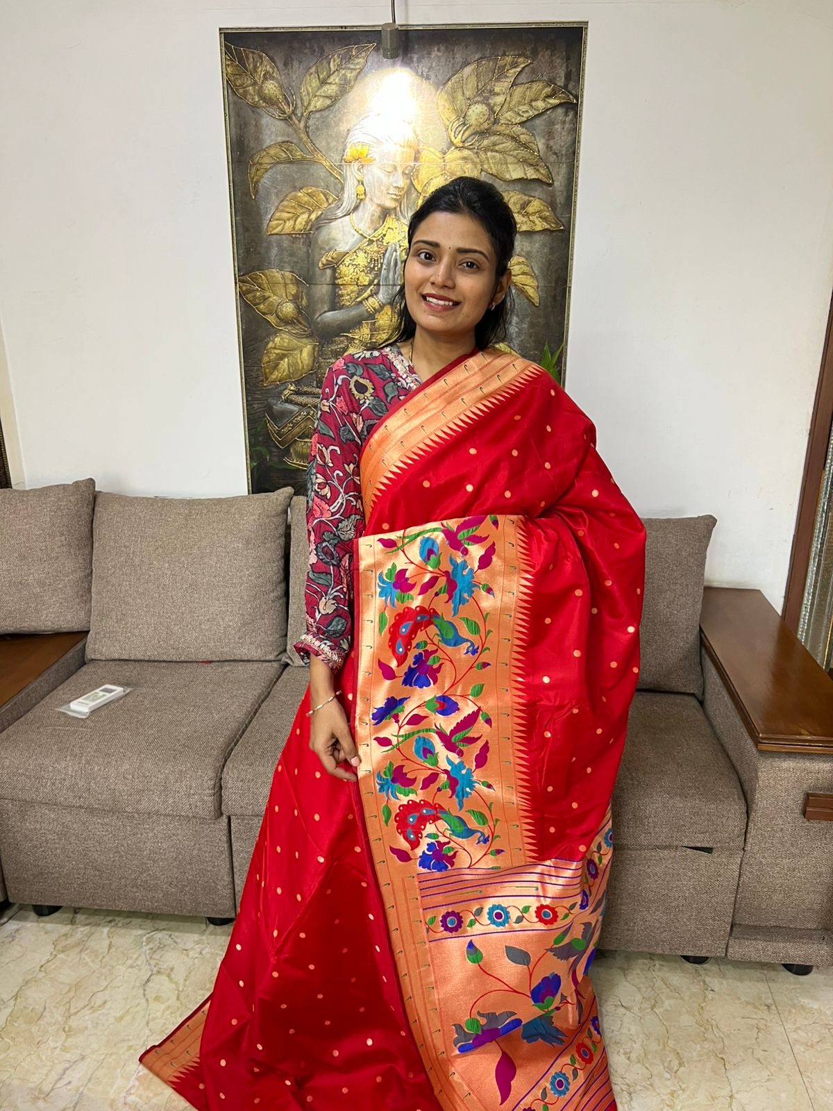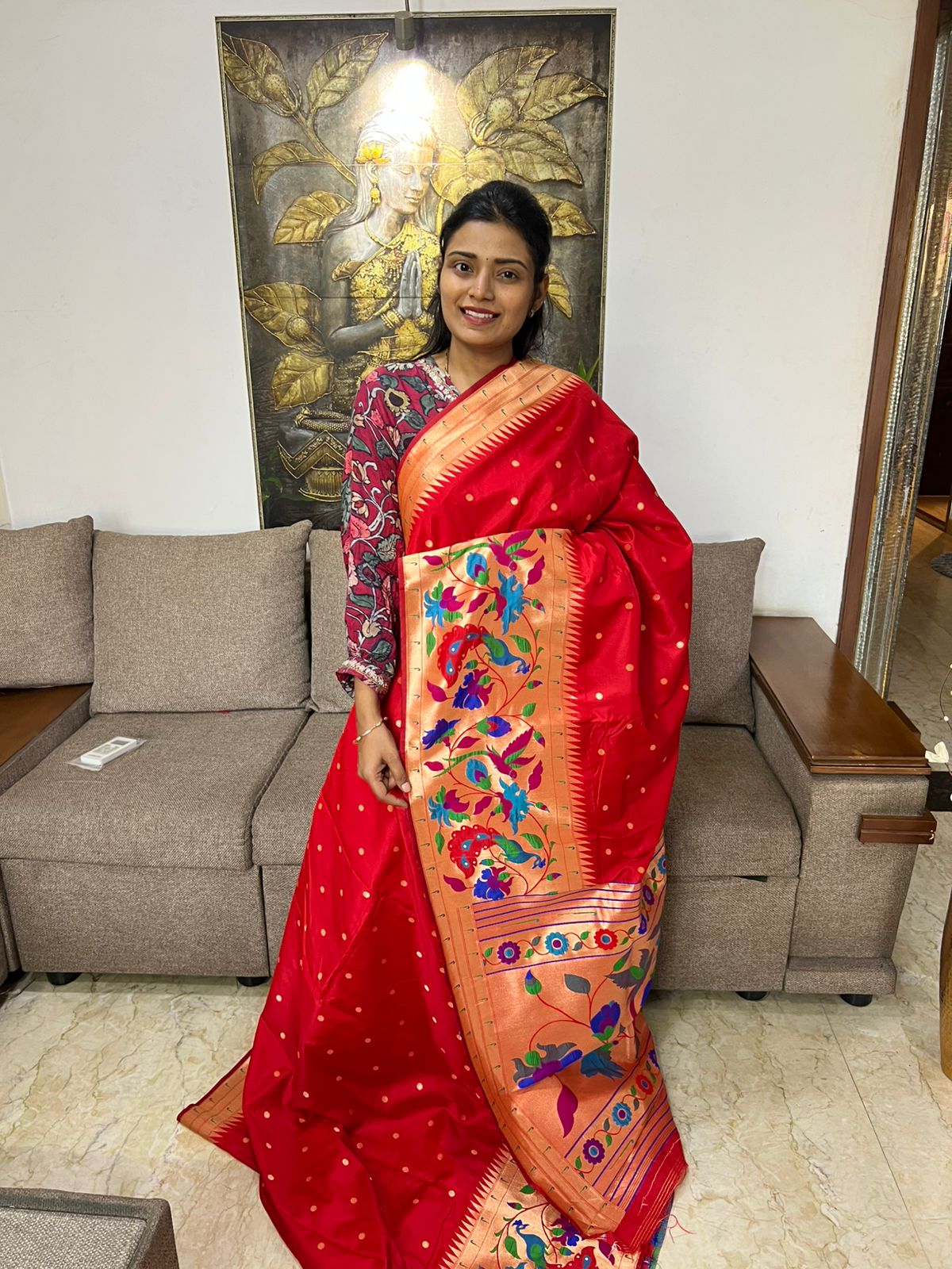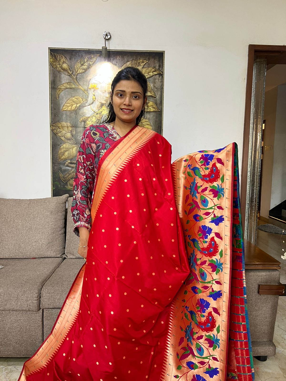 Beautiful Paithani Silk Saree With ith Peacock Weaving Border