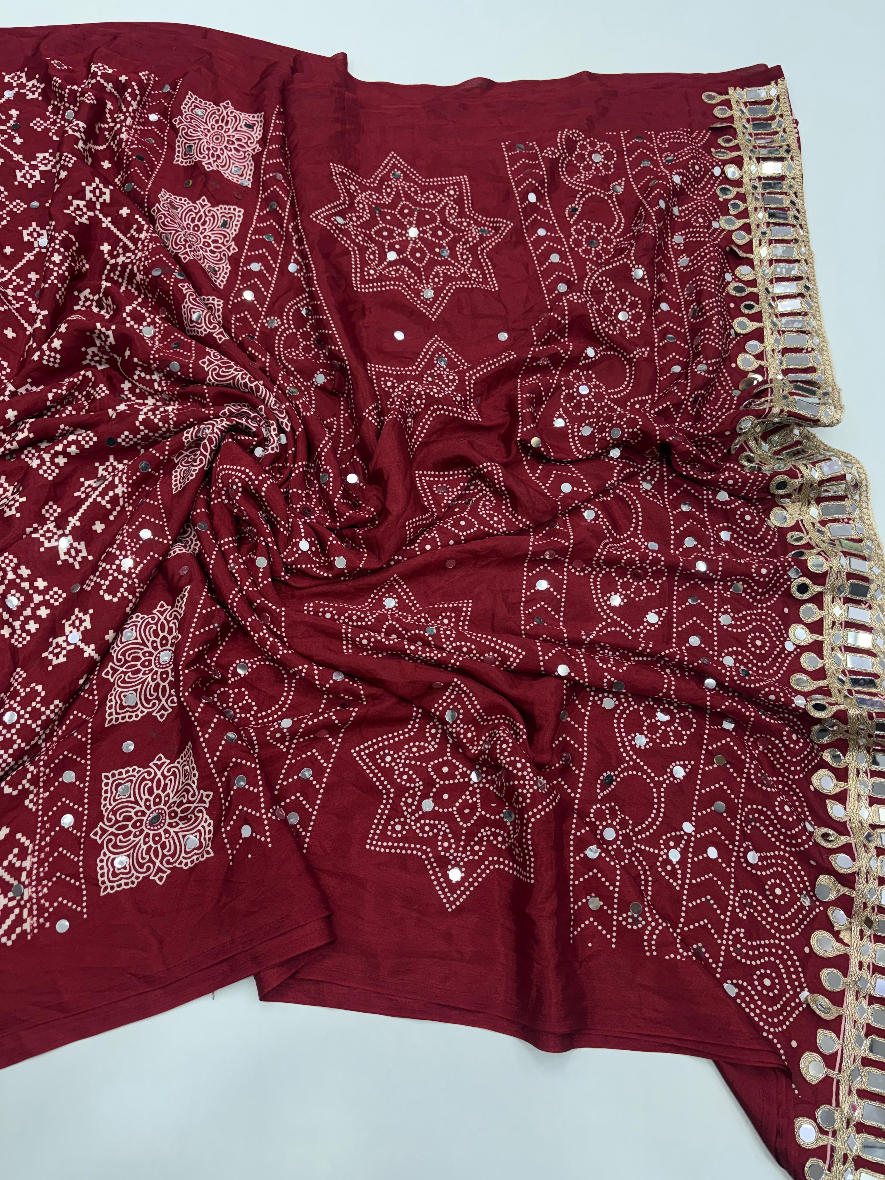 Beautiful Patola + Mirror Work Saree With Blouse