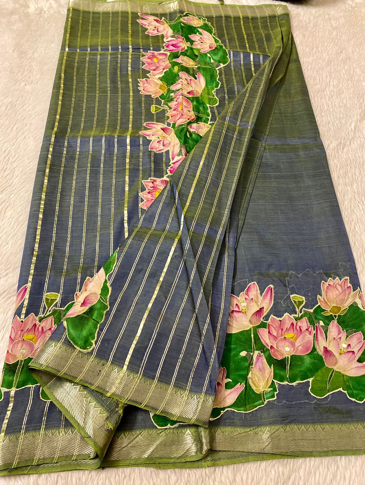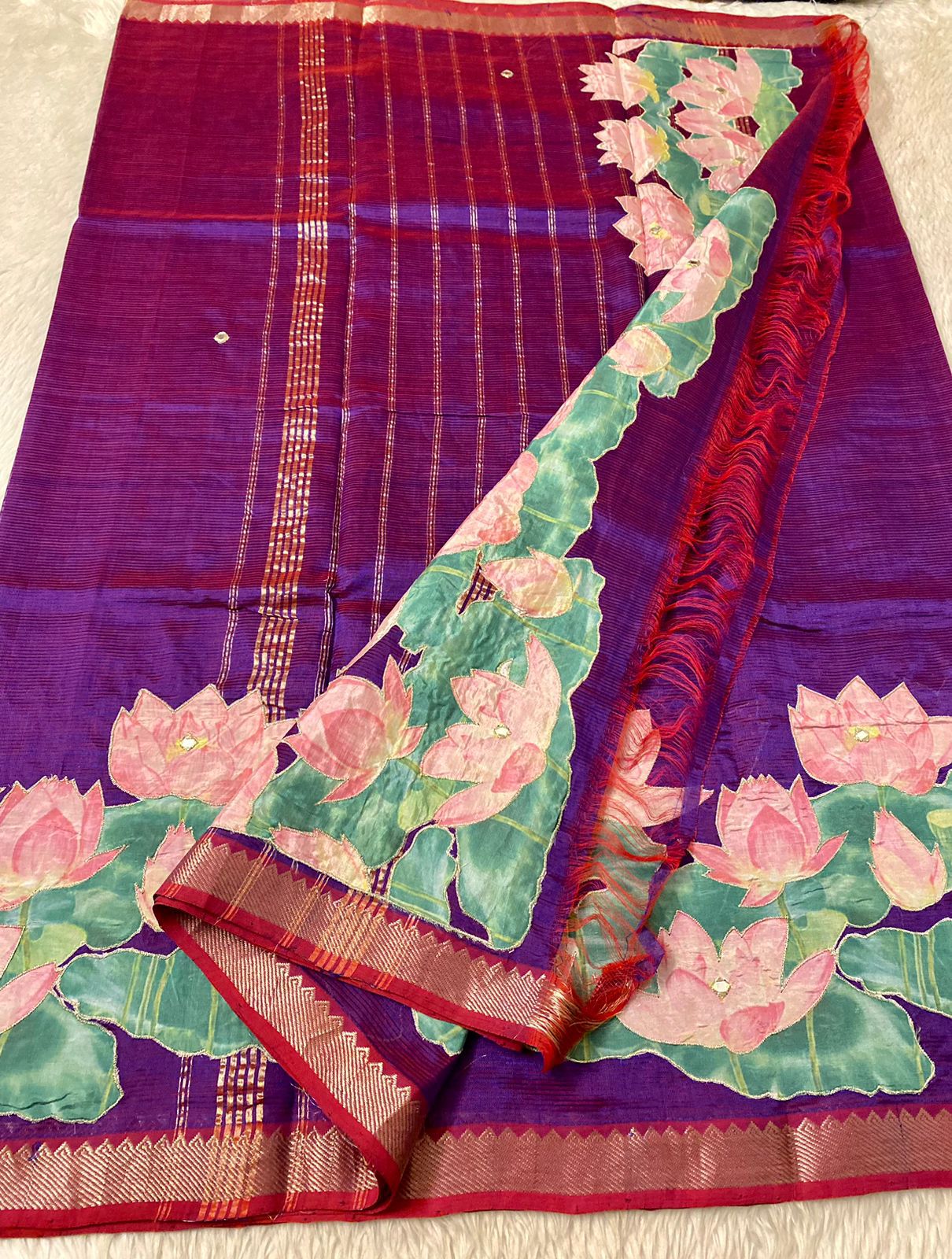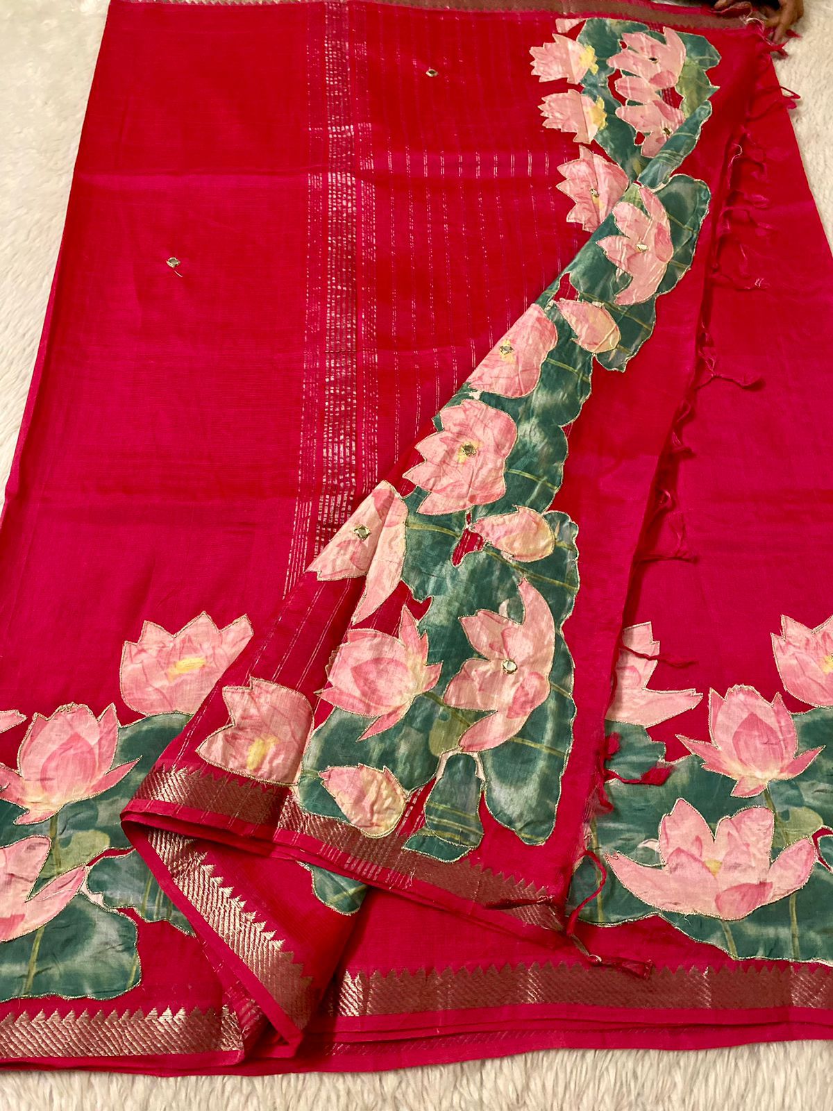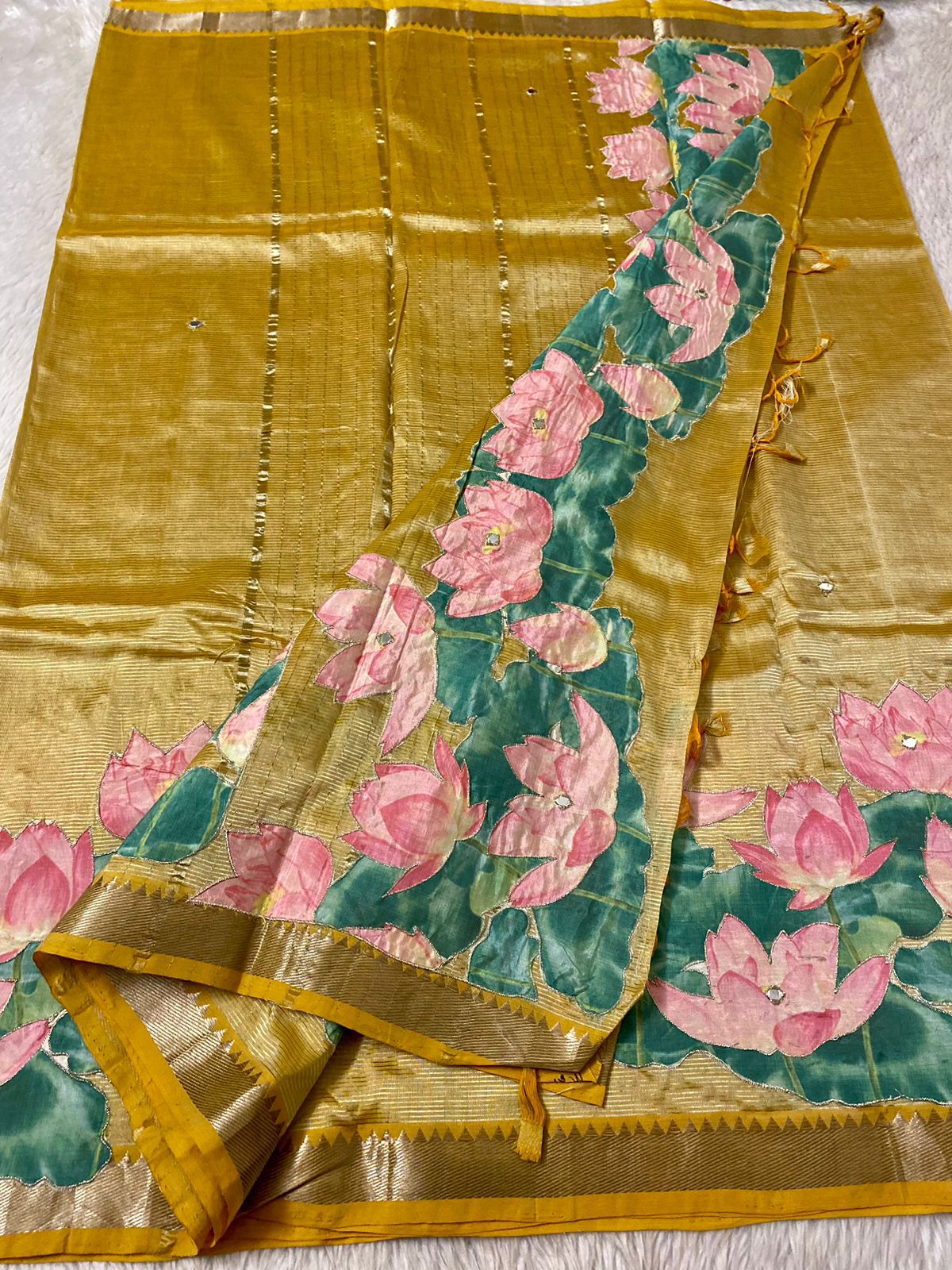 Mangalgiri Saree With Pichawi Applique Work All Over