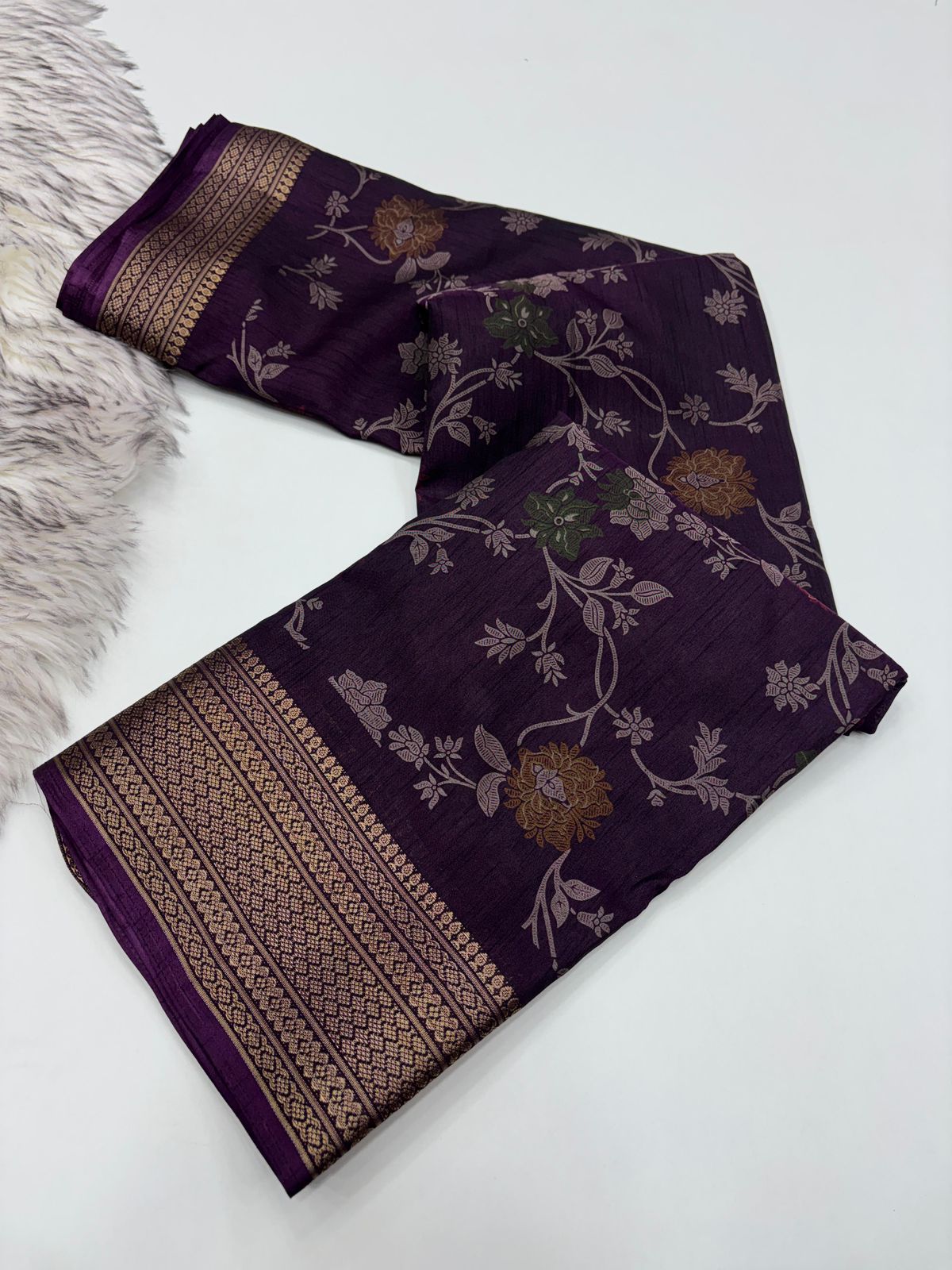 Upgrade your ethnic wardrobe with this beautiful Matka Silk Saree, designed to give you a rich and elegant look for every occasion. Crafted with a soft textured finish and detailed floral weaving, this saree perfectly blends tradition with modern style.